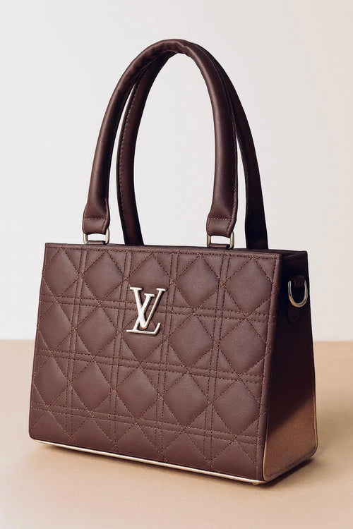 Luxury LV Style Diamond Quilted Handbag – Structured Brown Leather Top Handle